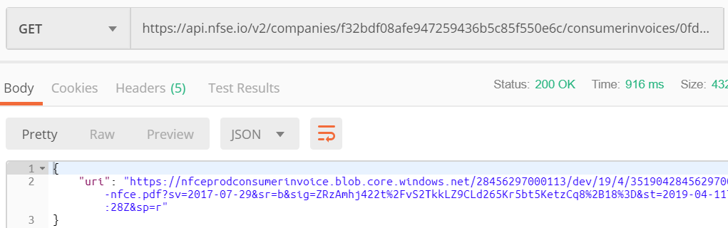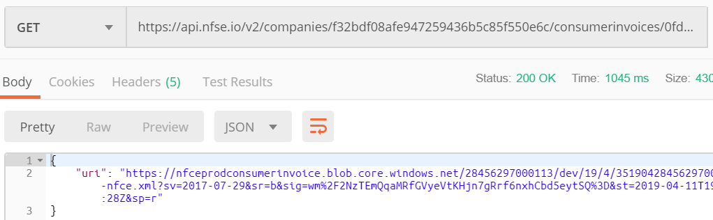 Observação: A consulta de XML e consulta de PDF geram uma nova url temporária (válida por 15 minutos) e necessitará uma nova requisição para receber o dado válido.