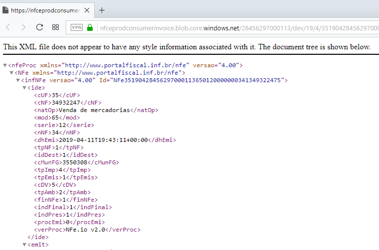 Para consultar o XML é utilizado a mesma URL de requisição de consulta de nota fiscal adicionado de /xml